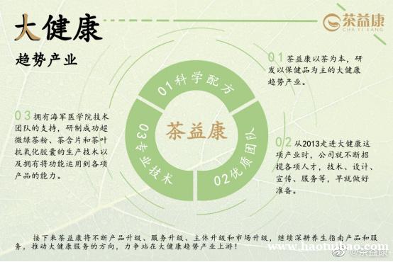茶益康走在前面,去做人无我有、人有我优、人优我专的引领者! 联系我时,请说是在好推宝看到的,谢谢!